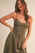 SUEDE BUSTIER CORSET FLARED MIDI DRESS