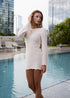 Effortless, elegant, and just the right amount of flirty—the Santorini Knit Cover-Up is your go-to for poolside lounging or sunset strolls. Crafted from a lightweight, breathable textured knit, this dreamy long-sleeve mini features subtle lettuce-edge hems and a scoop back with tie detail for that perfect touch of feminine charm.